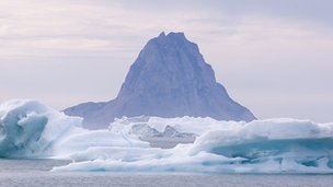 Photo1: Saunders Island and Wolstenholme Fjord with Kap Atholl in the background is shown in this picture taken during an Operation IceBridge survey flight in April 2013.